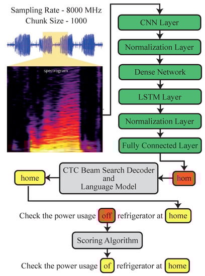 - Irugalbandara, I.B.C.; Naseem, A.S.M.; Perera, M.S.H.; Logeeshan, V. HomeIO: Offline Smart Home Automation System with Automatic Speech Recognition and Household Power Usage Tracking. In Proceedings of the 2022 IEEE World AI IoT Congress (AIIoT), Seattle, WA, USA, 6–9 June 2022; pp. 571–577. [Google Scholar] [CrossRef]