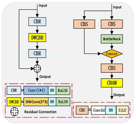 Inverted Residual: Inverted Residual Structure (left) and C3_CBAM Network Structure (right).