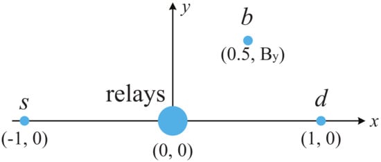 The aforementioned works assume that only a single relay was involved. However, multi-relay networks are more general in practical situations and single-relay selection is a simple technique to improve the performance of cooperative relay systems [,]. To the best of our knowledge, the relay selection for multi-relay cooperative AmBC systems has been recently considered only in [,]. In [], the scheme of jointly optimizing power allocation and relay selection for a DF-enabled cooperative AmBC system was investigated. In [], the authors studied the throughput maximization problem by jointly optimizing the time allocation and relay selection.