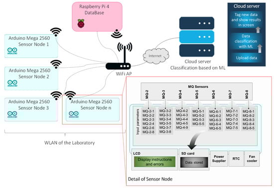 Proposed deployment of proposed gas sensor network in the laboratory, which includes ML in the cloud.