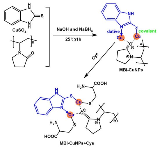 Synthesis of MBI-CuNPs and reaction of MBI-CuNPs with Cys.