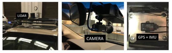 A mid-size sedan was used as a test vehicle, equipped with an LiDAR (Quanergy M8), Camera (Flir Grasshopper), and GPS+IMU device (Load).