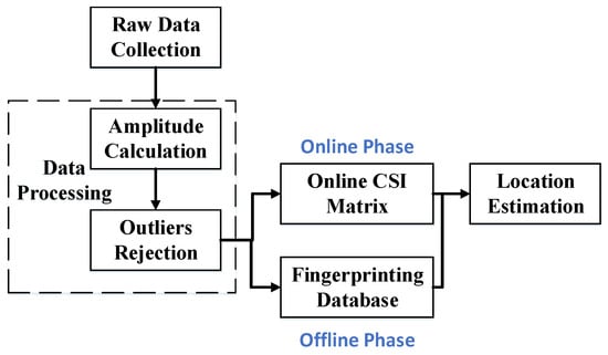 Direct use of the raw CSI can lead to an error in localization due to the effect of interference, so the data must be processed. In our approaches, the data processing consisted of two parts: amplitude calculation and outlier rejection.