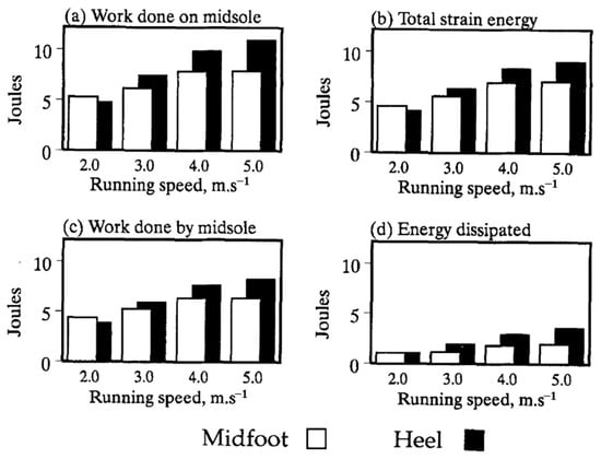 Effect of running speed on the energy stored and dissipated by the midsole [84]. Reprinted with permission from [84]. Copyright © 2023 Elsevier.