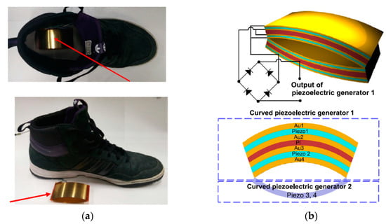 - Zhao, J.; You, Z. A Shoe-Embedded Piezoelectric Energy Harvester for Wearable Sensors. Sensors 2014, 14, 12497–12510. [Google Scholar] [CrossRef]