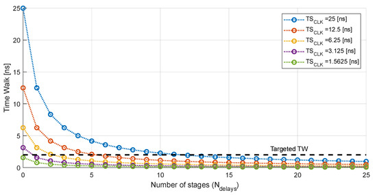 Reduction in the time walk according to the number of stages that integrate the TDC.