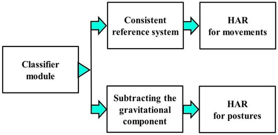 - Rotated and algorithm per type of activity. Finally, we repeated the third experimental setup but applying specific approaches depending on the type of activity (movements or postures). We used the approach based on the consistent reference system to movements and the solution of subtracting the gravity for postures.