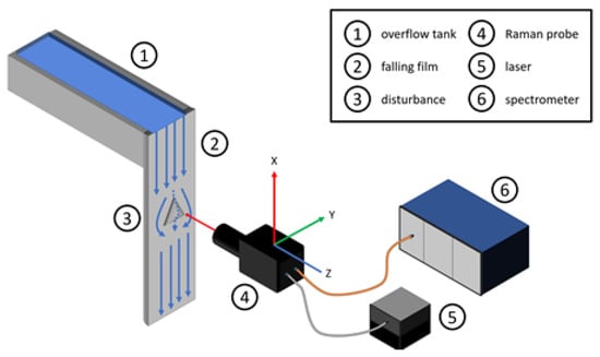 - Nachtmann, M.; Feger, D.; Sold, S.; Wühler, F.; Scholl, S.; Rädle, M. Marker-Free, Molecule Sensitive Mapping of Disturbed Falling Fluid Films Using Raman Imaging. Sensors 2022, 22, 4086. [Google Scholar] [CrossRef]