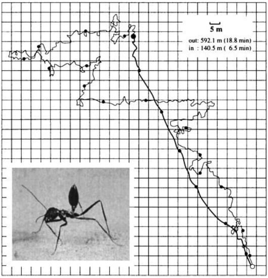 - Collett, M.; Collett, T.S.; Bisch, S.; Wehner, R. Local and global vectors in desert ant navigation. Nature 1998, 394, 269–272. [Google Scholar] [CrossRef]