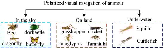 - Chu, J.; Zhang, R.; Wang, Z.; Wang, Y. Progress on bio-inspired polarized skylight navigation sensor. Chin. Sci. Bull. 2016, 61, 2568–2577. [Google Scholar] [CrossRef]