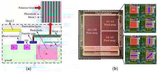 - Zheng, H.; Zuo, H.; Zhao, X.; Yang, Y.; Chang, C.H. A Dual-Mode Polarization Image Sensor Design Based on In-Pixel Dual-Band Metal Wire Grid for Trustworthy Sensing. IEEE Sens. J. 2022, 22, 23844–23855. [Google Scholar] [CrossRef]