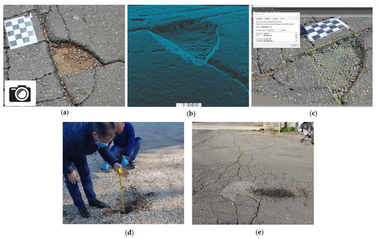 - The photogrammetry approach has been successfully tested by Tion et al. [30] to classify pothole samples in terms of severity levels. In recent years, Atencio et al. [31] developed a method for pothole measurement from 3D models generated from photographs shot by unmanned aerial vehicles (UAVs), determining the optimal flight parameters.