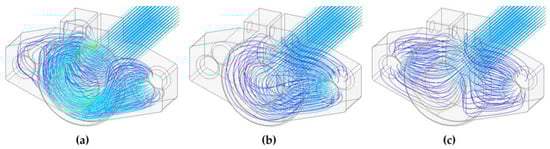 Figure 7a shows a state where contact with the sample is ensured only at the longitudinal edge of the holder and simulates an insulating layer on the surface of the sample in contact with the holder. The other cases in Figure 7b,c then show ideal contact over the entire surface and current entering the holder from two sides. In the models, the interface layer between the holder and the sample was not considered, but the insulating region was simulated by inserting a non-conductive area without an air gap.