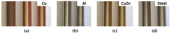 Such materials have good potential in electrical applications in the design of electrical machines (hybrid rotors of asynchronous motors) and apparatus (bus bars, input terminals, parts of conducting ways or contacts) [41,42,43,44]. The partial substitution of Cu by Al generally leads to a reduction in weight while improving the mechanical and performance properties of the solid conductor without significantly reducing its electrical conductivity.