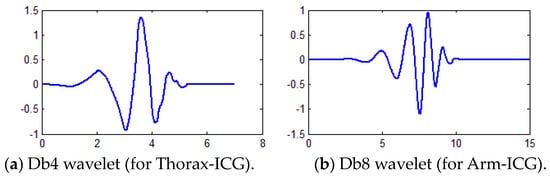 - Sebastian, T.; Pandey, P.C.; Naidu, S.M.M.; Pandey, V.K. Wavelet based denoising for suppression of respiratory and motion artifacts in impedance cardiography. In Proceedings of the 2011 Computing in Cardiology, Hangzhou, China, 18–21 September 2011; Volume 38, pp. 501–504. [Google Scholar]