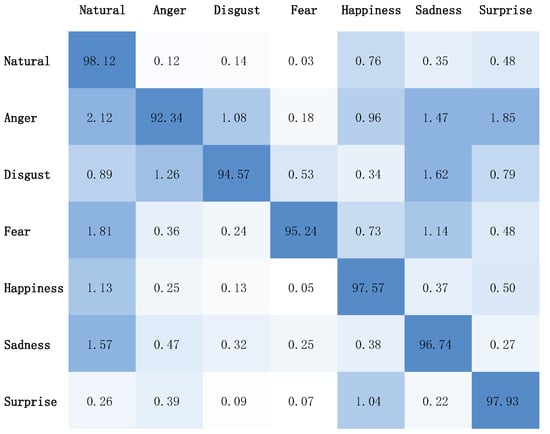 In order to further study the performance of our model on emotional expression, the emotional accuracy of different categories in the DailyDialog dataset is given in Table 4. The corresponding confusion matrix of emotion classification is shown in Figure 2.