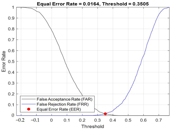 Next, we analyzed the error rates of the speaker authentication system and observed the changes in the error rates by adjusting the discrimination criteria. After observing the changes, we could adjust our classifiers according to different application scenarios, such as authentication on mobile phones, which could be used frequently. If the classifier was too strict, it would result in ongoing access errors and reduced convenience. However, if it was applied in financial-related aspects, the classifier would need to be highly accurate in order to ensure that the registrant and the tester were the same person.