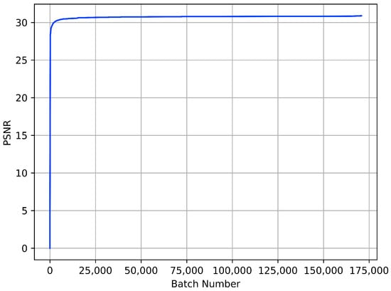 where N is the total number of pixels in the image and I and R represent the pixel value of the original image and the reconstructed image, respectively. PSNR is then computed as the ratio of the maximum possible pixel value (usually 255 for 8-bit images) to the square root of the MSE: