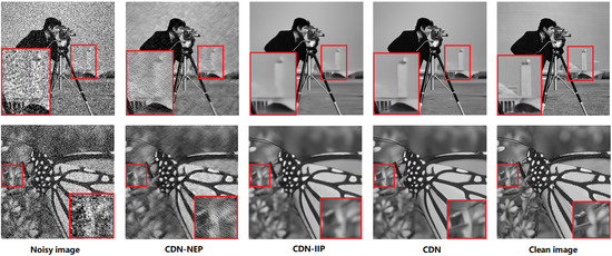 However, there are still some limitations in our work. The same architecture is used for both IIP and NEP, and exploring different architectures could potentially improve the performance of the network. For example, vision-transformer-based image denoising networks have achieved state-of-the-art performance [45,46]. Incorporating a vision transformer as the backbone of IIP or NEP may enhance the denoising performance of CDN. In addition, although SSIM loss shows better results than L1 and MSE for the image information loss, there might be other loss functions that could be more effective. These concerns will be explored in future studies.