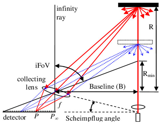 After the laser is emitted by the transmitter in Figure 2, it is reflected or scattered by objects at different positions. Part of the reflected light is imaged on the detector, such as a charge-coupled device (CCD), after passing through the receiving lens. Objects at different positions are imaged at different positions on the CCD. Combined with the geometry knowledge of similar triangles, the distance between the actual object and the laser emitter can be calculated by the spot distance on the CCD.
