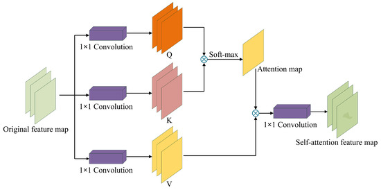 The definition of the self-attention mechanism is illustrated in the Formulas (5)–(10). Assuming that the input data to the attention module from the previous feature layer are X, then the attention degree of certain position i to position j is shown in Formula (5).