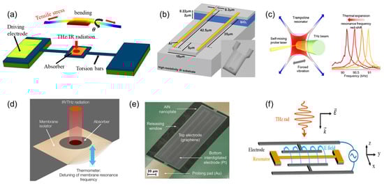 Overall, MEMS/NEMS resonators offer advantages in fast and highly sensitive THz detection, which is also the core of this review. It should be noted that in what follows, we will refer to the THz detection element using MEMS as a “MEMS bolometer” in some places.