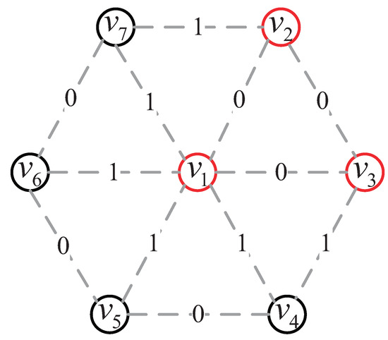 A collusive false data injection attack (CFDIA) is a false data injection attack in which the readings of some adjacent pairs of compromised sensors are modified in a coordinated manner so that the changed readings are still spatially–temporally correlated. Owing to the attacker’s limited budget, assume (i) the compromised nodes are less than normal nodes, and (ii) the compromised sensors are concentrated in a small area. Figure 1 illustrates a CFDIA to a toy WSN of seven nodes.