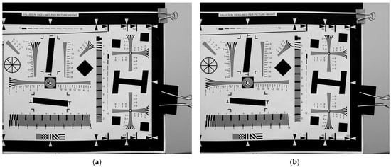 Pre- and post-restoration comparison of ISO 12233 as the scene target. (a) Pre-restoration; (b) post-restoration.