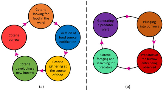 One distinguishing attribute of ’ nature is communication, and the ’ unique response to different sounds makes it possible to use the recommended method. The majority of scientists concur that possess a critical animal language that is yet to be discovered [35]. Although to us, the ’ “bark” might merely seem to be a simple squeak or yippee, to a , it has far deeper meanings [35]. The sounds or signals used by can indicate anything from the presence of predators to the availability of food. The’ ability to communicate has a substantial impact on their ability to ward off predators. They can distinguish between various predators and their distinctive hunting styles [55]. This behavioural adaptation is thought to result from the necessity for a varied reaction or set of survival abilities in response to the various predator hunting tactics. For example, if the signal identifies a hawk as the predator, only in the hawk’s flight path hide, while others keep watching from their burrows [56]. In the case of coyotes, they only watch from their tunnel entrances, but when they see human predators, they collectively retreat into their burrows. Exploitation is accomplished using an exact reply to a particular sound. The coteries respond appropriately to the various distinct sounds, which are compared to calls to prospective places. The core of the suggested PDO is this ongoing cycle of behaviours [35].