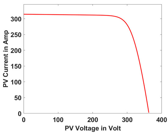 A PV system converts solar energy into electrical energy using solar irradiance as a source of energy and is regarded as one of the most important renewable-based distributed energy resources because it is eco-friendly, has no noise pollution, requires minimal maintenance, and uses no fuel [36,37]. The basis of a PV system is the concept that solar cells convert light energy into electrical energy when it strikes them. The PV panel behaves as a current source, producing a photoelectric current that can be mathematically calculated from Equation (1) given below [4]: