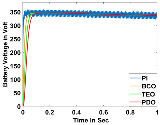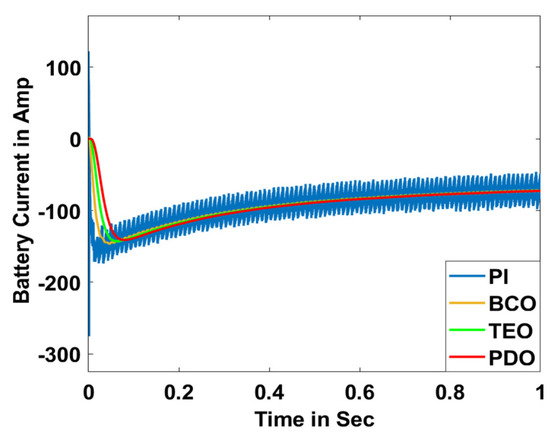 Batteries are widely regarded as potent energy storage technology that can be employed in a wide range of electrical implementations. Due to their enormous energy storage capacity, they perform better than other available energy storage devices. Batteries are made up of components that convert electrical energy into chemical energy and vice versa [39]. Batteries provide a steady voltage and a significant lift. They can change the frequency through the absorption or injection of power into the load during frequency changes. Numerous types of battery-based energy storage units have been reported, like lead–acid, lithium-ion (Li-ion), nickel cadmium (Ni-Cd), nickel–metal hydride (Ni-MH), etc. However, Li-ion has normally been employed for application in MG systems due to many advantages such as (1) less self-discharging ability; (2) more charging and discharging cycles; (3) better efficiency; (4) higher energy density; and (5) being more economical [40].