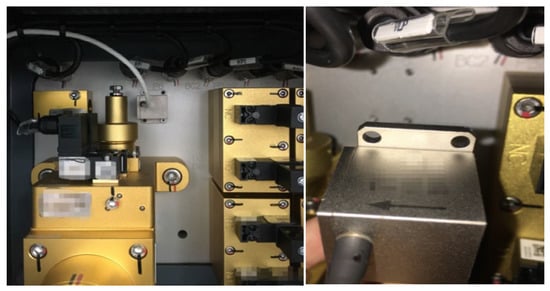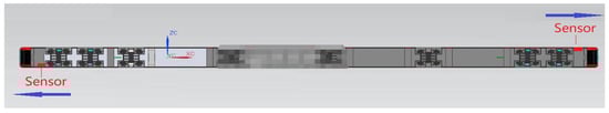 To meet the ramp judgment criteria outlined earlier, two uniaxial deceleration sensors were mounted on the front and rear vehicles, with their respective parameters provided in Table 1. These sensors were positioned inside the brake control device box, as illustrated in Figure 10. It is worth noting that the deceleration sensor is oriented in the positive direction away from the center of the train. During actual operation, the train’s forward direction is determined by the speed signal, and the signal in the opposite direction is appropriately converted.