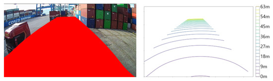 A width of 16 m and a length of 60 m were set as the range in this study, considering the direction of the crane movement and the movement of objects likely to be detected to prevent a collision. Figure 7 displays the effective range of the mapping table.