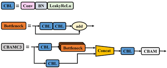 The C3 module in the backbone network of YOLOv5 is a lightweight convolutional neural network module that extracts the features of targets by increasing the depth and receptive field of the network. After the information processing by the C3 module in the backbone network, the feature information is prone to loss. Therefore, our method combines the C3 module in the backbone network with an attention mechanism to improve it and create the CBAMC3 module as shown in Figure 9. The addition of the attention mechanism replaces the standard convolutional module at the end of the C3 module with an attention mechanism to extract features, allowing the model to focus on the features of the target and accurately identify the status of different targets, thereby improving detection performance and reducing false detection rates.