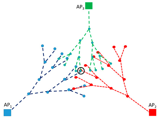 We pointed out that the range estimates are obtainable through the field strength or delay measurements. However, angular observations tend to be bulkier and resource consuming. Nevertheless, anchor points are more able in terms of available energy, antenna capabilities, and computing power. Therefore, the initial angle is considered to be known and observable at the anchor point. The subsequent angular directions , i = 1,2, …, are inferred from the node context as it is explained in the following paragraphs.