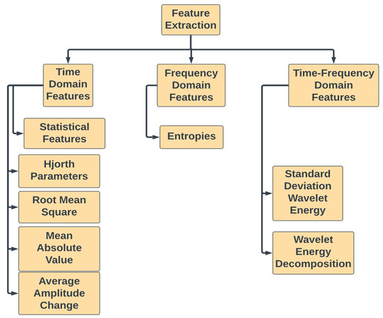 Features extracted from time domain, frequency domain, and time-frequency domain features.