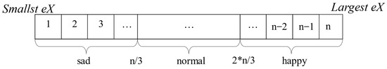 Regarding particle swarm , its emotional state is sorted, and all particles are divided into three different emotional states based on the average value of their emotional state, as shown in Figure 2.