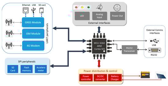 The Micro-Controller Unit (MCU) is a 32-bit ARM Cortex M3 based architecture. It combines low power consumption and several internal peripherals and interfaces. It is an engineering trade-off between other more powerful and energy consuming architectures (such as the ones based on computer modules and Real-Time Operating Systems—RTOS) and ultralow power MCUs.