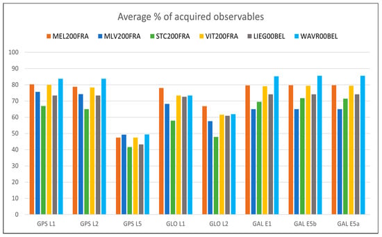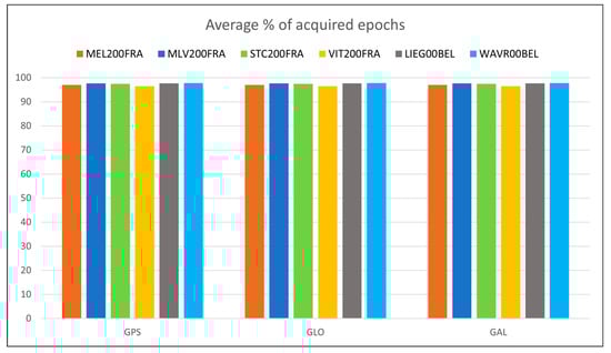 - It computes a set of quality parameters related to the raw GNSS data acquired in the last hour, such as percentage of acquired over expected GNSS epochs and observables, percentage of observables with cycle slips, average multipath and carrier to noise ratio. All parameters are computed for each frequency of each tracked satellite system. In order to generate trustable results, quality indexes are computed exploiting an instance of the G-NUT Anubis Free software [], which is embedded in the PDP.
