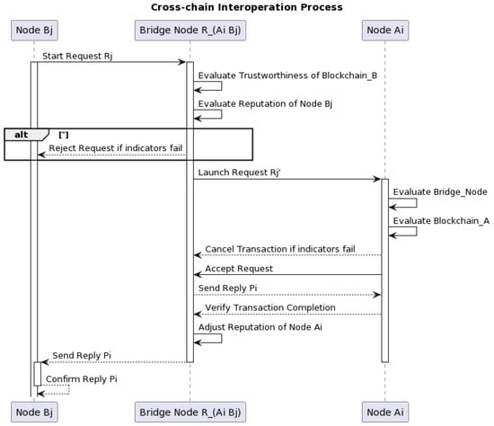 - Node then launches a request and sends to node . At the same time, the trustworthiness of node and blockchain_A will be evaluated through the same steps in Phase 2. That is, the seven indicators presented in Table 1 will be adopted to examine whether node and blockchain_A is classified as misbehaved one or not.