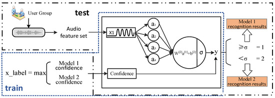 In order to enhance the accuracy of speech recognition, this paper developed a convolutional neural network model using the Keras library. The model architecture comprised three convolutional layers, two pooling layers, a Flatten layer, and two fully connected layers. A sigmoid function was applied for binary classification. The model was trained using the Adam optimizer with binary cross-entropy as the loss function, and accuracy was used as the evaluation metric. By analyzing the two-channel confidence of the speech signal, the model generated an output value that determined whether to utilize the trained language model. This process improved the accuracy of speech recognition. A threshold, denoted as σ, is set within the neuron to regulate the decision network’s division range. If the model output exceeded σ, the trained speech model was deactivated, and the Model 1 speech network was utilized. Conversely, if the output was below σ, the Model 2 speech network was employed for audio recognition.