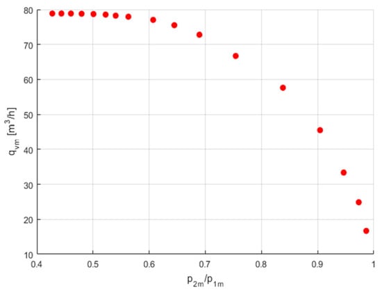 Figure 10 shows the measurement data for the volume flow rate as a function of the pressure ratio,