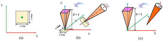 The distance function of the plane is f ( P i , a , b , c , d ) , where d is related to the plane position. Since the deviation zone is a relative distance, the parameter d has no effect, and the process is a three-dimensional optimization problem. We estimate the plane normal, n ( a , b , c ) , using the least-squares method, and then the algorithm’s search area is determined by applying the Rodrigues rotation matrix, as shown in Figure 1 and Figure 2c.