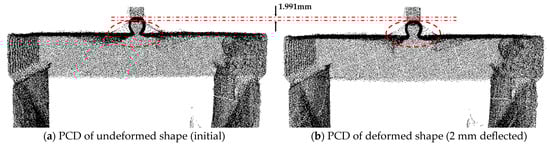 PCD acquired at the initial state (a), and 2 mm deflected state (b).