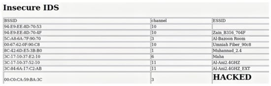 - Heiland, D. Practical Exploitation Using a Malicious Service Set Identifier (SSID). Available online: https://media.blackhat.com/eu-13/briefings/Heiland/bh-eu-13-practical-exploitation-heiland-slides.pdf (accessed on 10 June 2023).