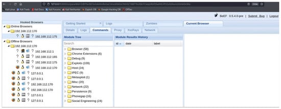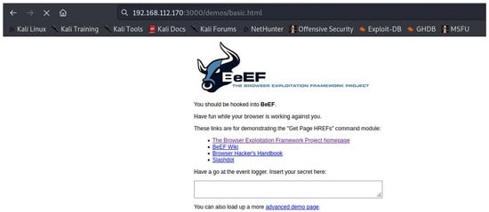 - The Browser Exploitation Framework. BeEF. Available online: https://beefproject.com (accessed on 10 June 2023).