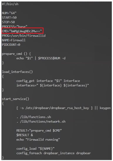 - Script injection: This type of attack involves injecting malicious code into a script executed by the operating system. For example, some operating systems and firmware in embedded systems load a specific script during the booting process. An attacker could inject some lines of malicious code into that script to change or disrupt a certain functionality in the target device [].