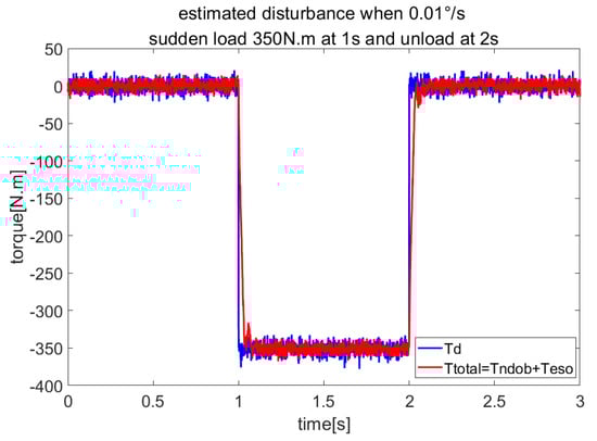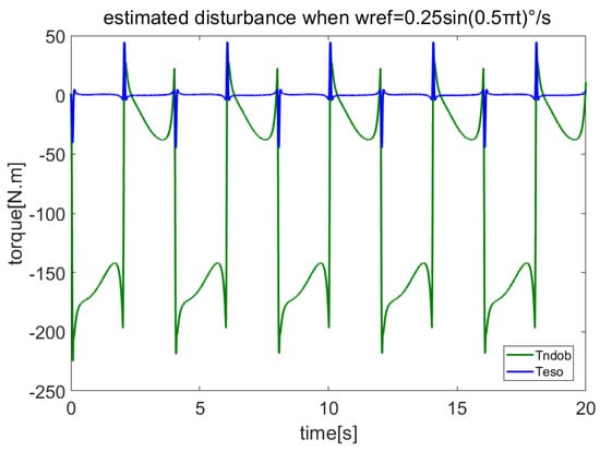 The DOB converges exponentially, and the convergence rate can be determined by the gain K. In practical engineering, it is difficult to obtain the acceleration signal by differentiating the speed because of the signal noise. Therefore, the DOB cannot estimate disturbance well, but the NDOB can be designed without the acceleration information.