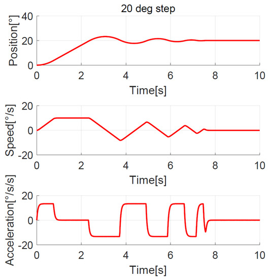 Position, speed, and acceleration curve using the step response with improved NTD.