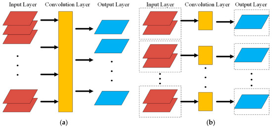 Ordinary convolution and group convolution. (a) Ordinary convolution. (b) Group convolution.